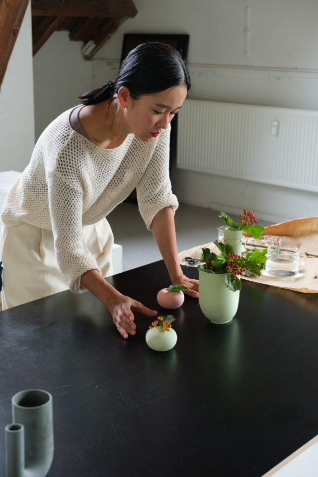 日本において、世界各地のインテリアプロダクトを総合的に扱うホームファニシングショップの先駆けであった〈IDÉE〉のPRを経て、花屋に転身。壱岐ゆかりさんが東京に〈the little shop of flowers〉という名の店を構えて15年になる。今年は、子どものオランダへの留学を機に、自らも日本とオランダの2拠点で活動するべく移住をした大きな節目の年。〈西海ヨーロッパ〉が拠点を置くオランダ・ライデンのショウルームで、「Ha’」シリーズの花器を通じて、壱岐さんが今2つの国で感じている“花を生ける文化”について訊いた。